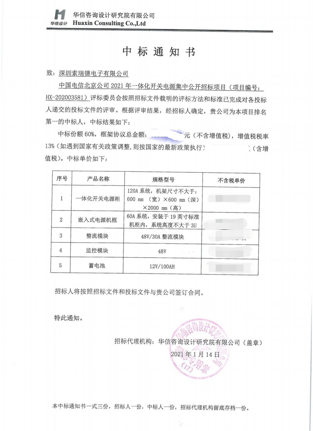 喜讯!斗球直播,在线NBA直播,免费英超直播,欧冠直播,CBA直播成功中标北京电信2021年一体化开关电源采购项目;