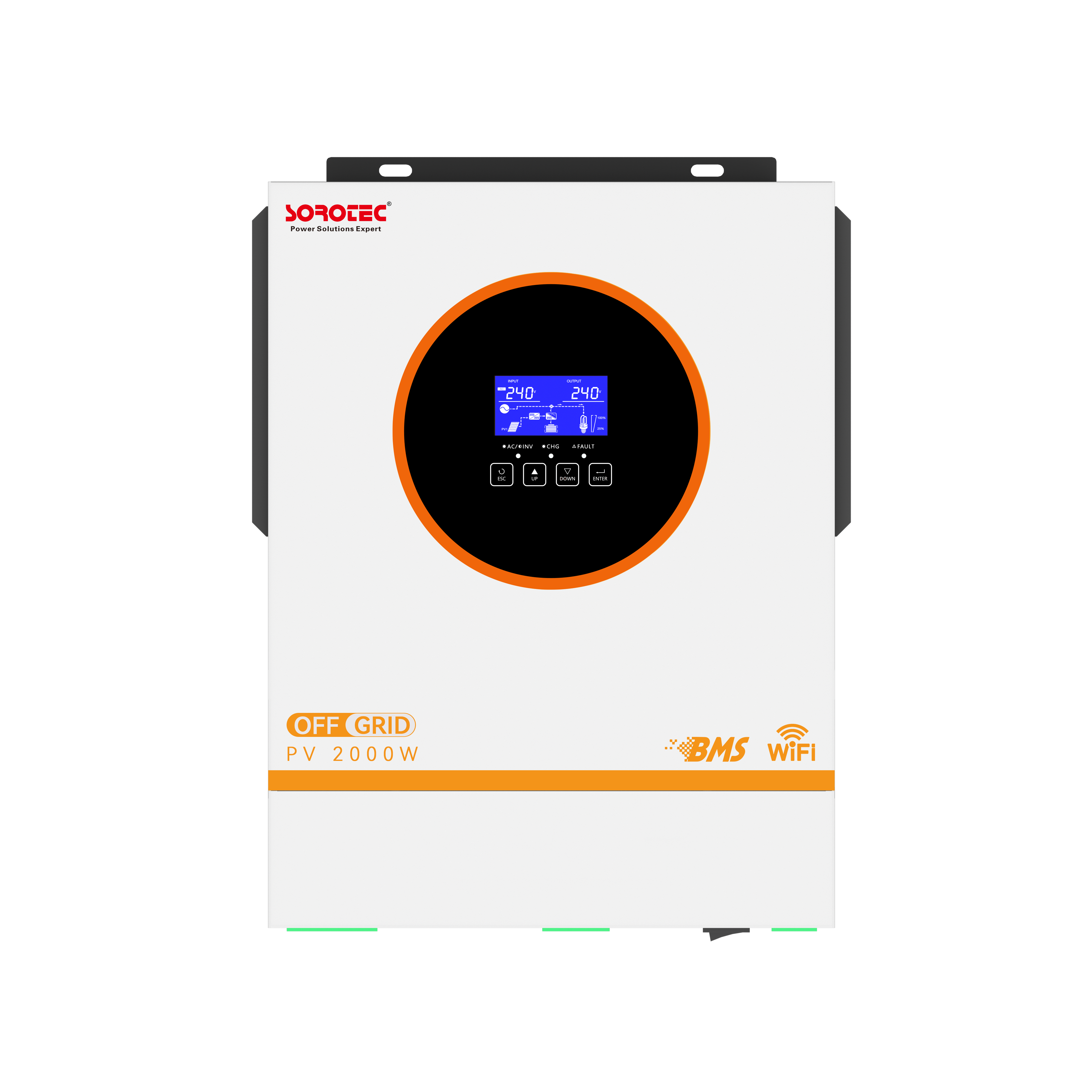 1、纯正弦波MPPT太阳能逆变器 2、输出功率因数 1 3、并机最多可达9台 4、PV输入电压范围宽(60-450VDC) 5、不接电池可正常运行工作 6、内置80/100A MPPT太阳能充电器 7、带电池均衡功能,优化电池性能和延长寿命 8、内置防尘网,适用于恶劣环境