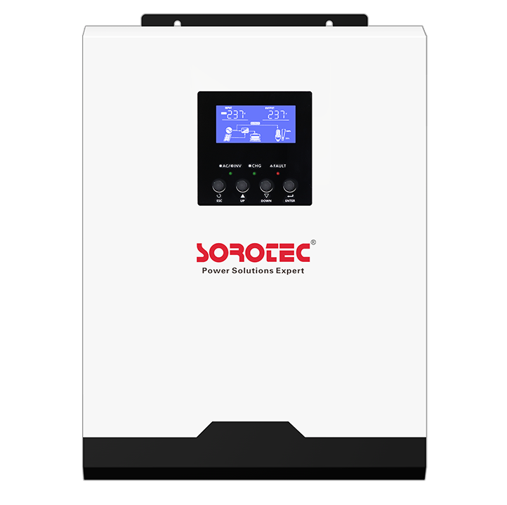 1、纯正弦波离网型光储一体机 2、输出功率因数1 3、可选大功率充电电流 4、宽直流输入范围 5、家用电器和个人电脑的可选输入电压范围 6、通过LCD设置可配置市电/太阳能输入优先级与交流电源或发电机电源兼容 7、市电恢复时自动重启 8、过载和短路保护 9、智能电池充电器设计,优化电池性能 10、冷启动功能 11、可选防尘网 12、支持发电机